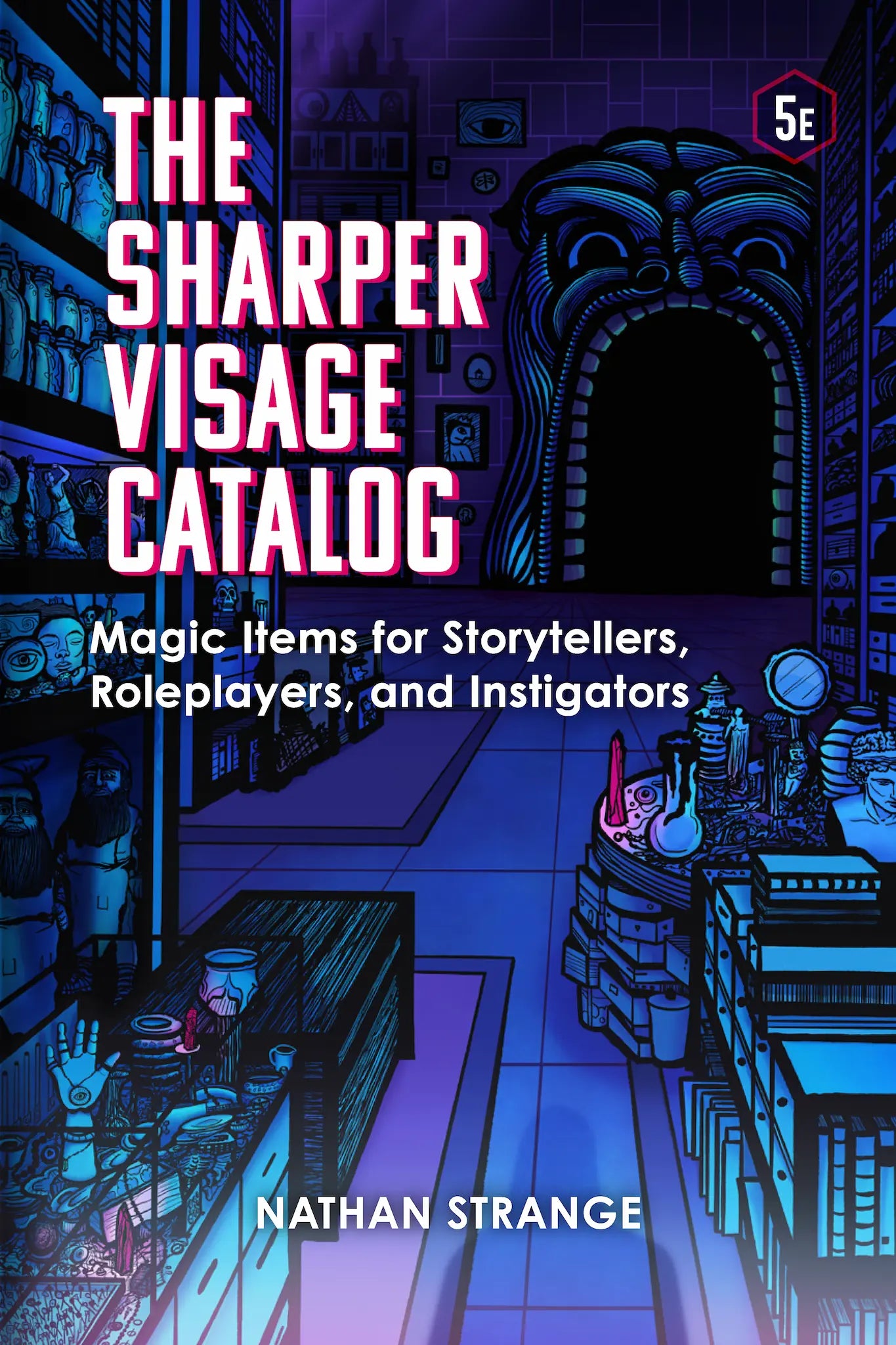 The Sharper Visage Catalog is a fantasy TTRPG supplement for your 5e campaign featuring an eccentric 20th-level retired-adventurer-turned-shopkeeper and his collection of memorable magic items for players who enjoy roleplaying, story-driven campaigns, and just the right amount of weird.